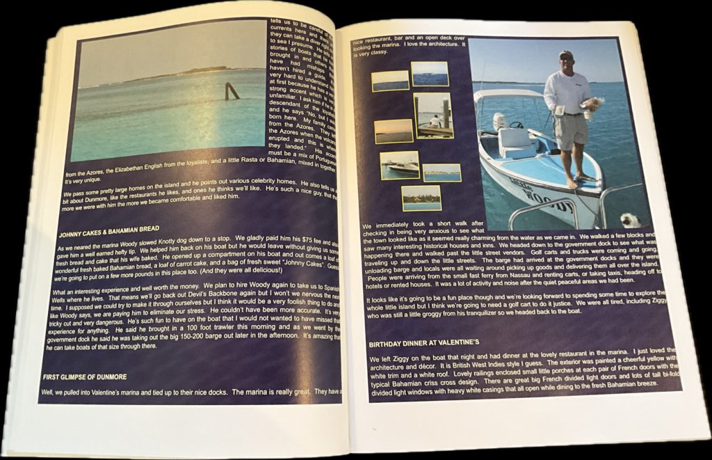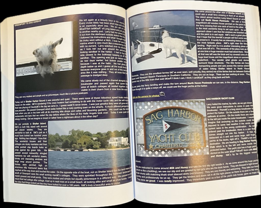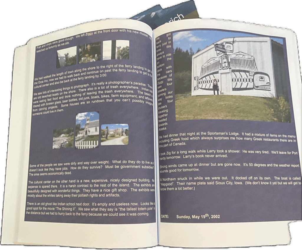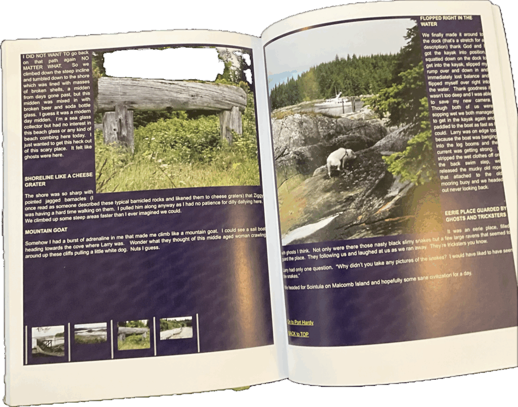 All of these books are unedited copies (for preservation) of the logs of our voyages and travels, posted on our web site (KnottyDog.com) 25 plus yeas ago for friends, before FaceBook and other social media arrived. Books are 8.5×11 , color , on flat paper